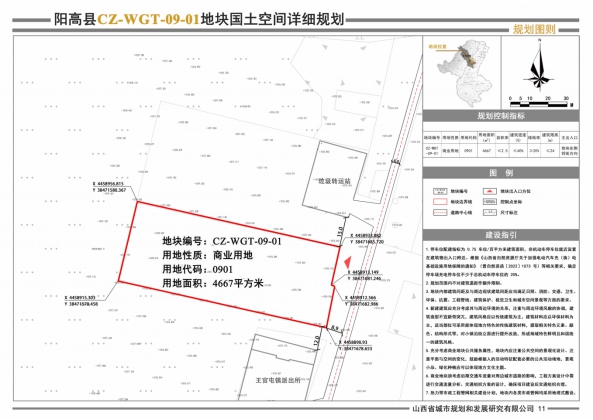规划确定CZ-WGT-09-01地块用地性质为商业用地(用地代码:0901),用地总面积4667㎡(0.4667公顷),依据规划用地性质赋予地块相应控制性指标,后附地块用地规划图、地块控制性指标一览表。